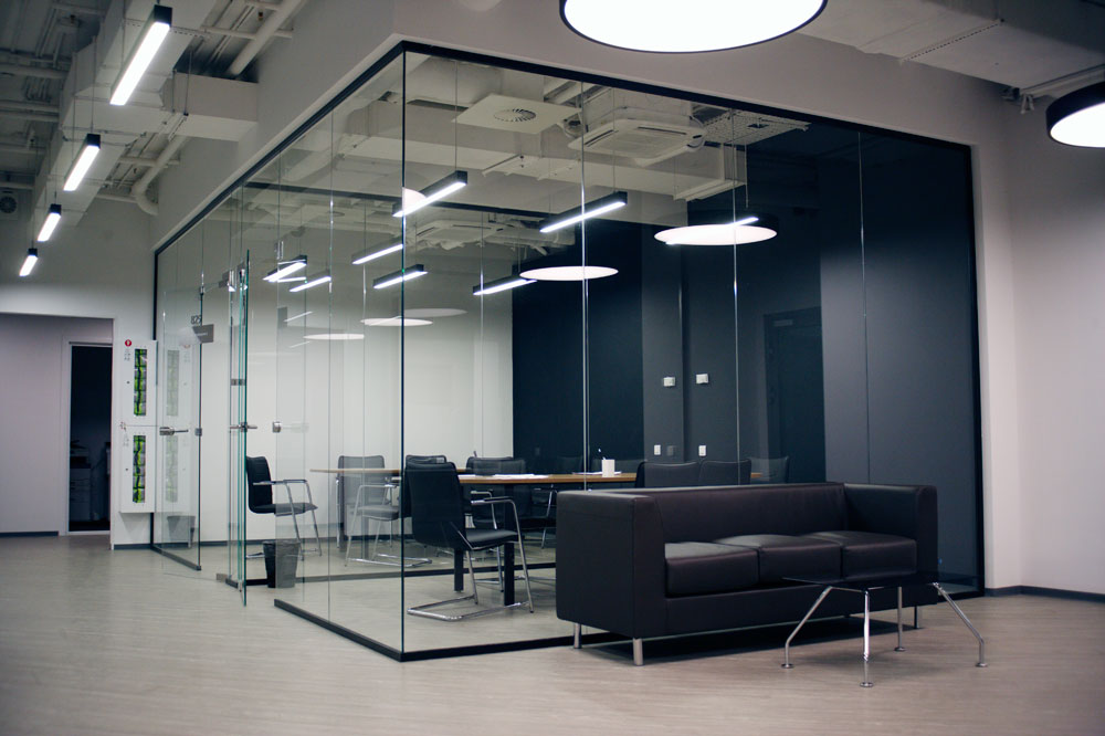 Цельностеклянные офисные противопожарные перегородки могут изготавливаться как в полностью остекленном варианте, так и в частично остекленном исполнении. Основное предназначение таких конструкций — это разделение общего помещения на несколько отдельных рабочих зон. При этом преследуется несколько целей: