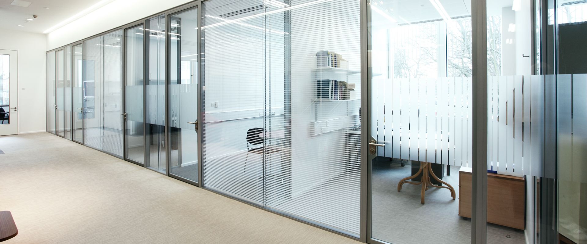 Противопожарные перегородки комбинированного типа могут изготавливаться как в полностью остекленном варианте, так и в частично остекленном исполнении. Основное предназначение таких конструкций — это разделение общего помещения на несколько отдельных рабочих зон. При этом преследуется несколько целей: